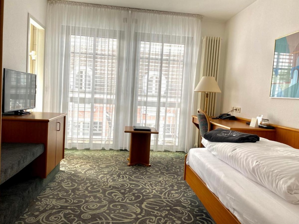 Bright and modern room features a flat-screen TV with satellite channels and a hairdryer in the private bathroom.